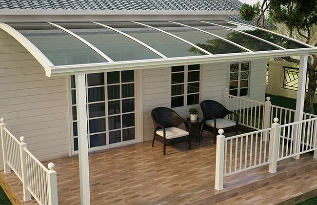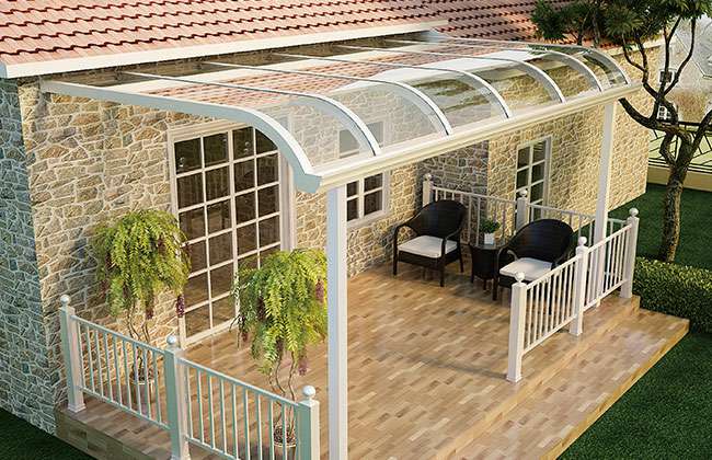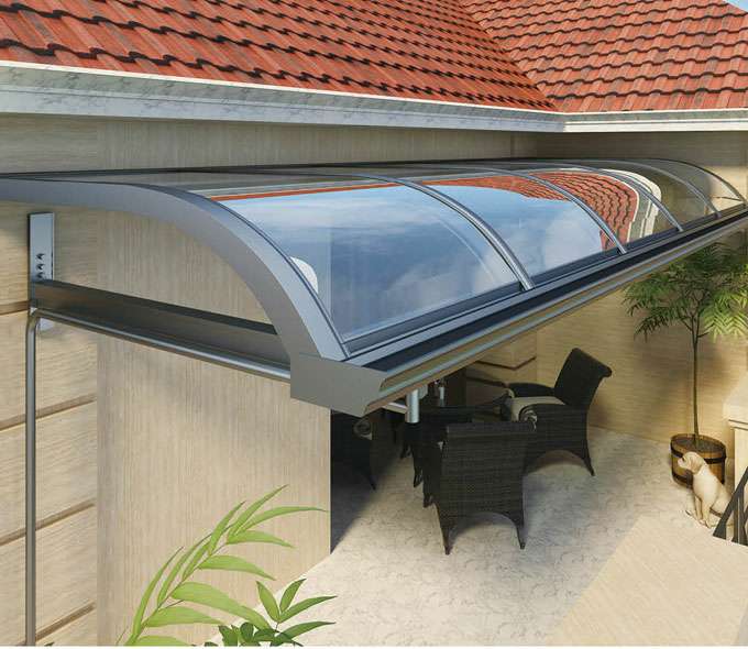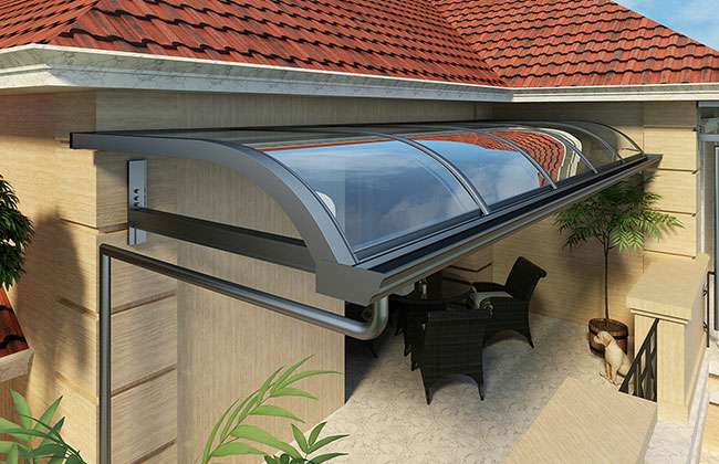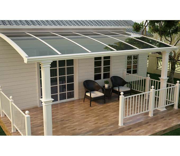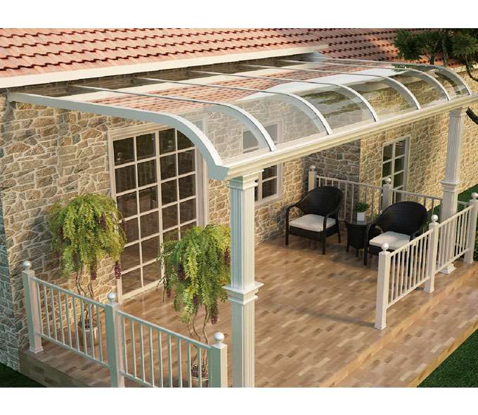 天博网页版-天博(中国)雨棚(A5款窗棚、露台棚)系列产品是高强度铝合金和聚碳酸酯板(耐力板)的结合。主体结构全部采用高品质、高强度铝合金材料精加工而成,具备的氧化保护能力,不生锈,表面特殊的工艺处理,大大提高了雨棚的使用寿命。顶棚耐力板的运用,能遮挡阳光中的有害紫外线对地板、墙壁、窗帘等损害;同时阻挡夏日毒辣的太阳,可以控制室内温度的上升,冷气效果也大幅度提高,从而达到节约能源的作用。