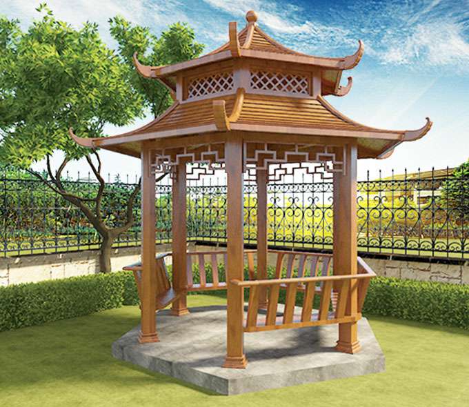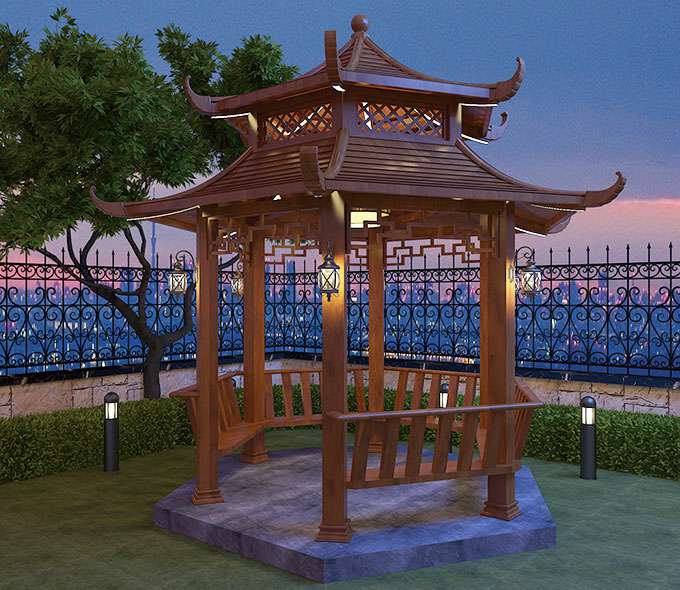 六角双层凉亭弯弧
